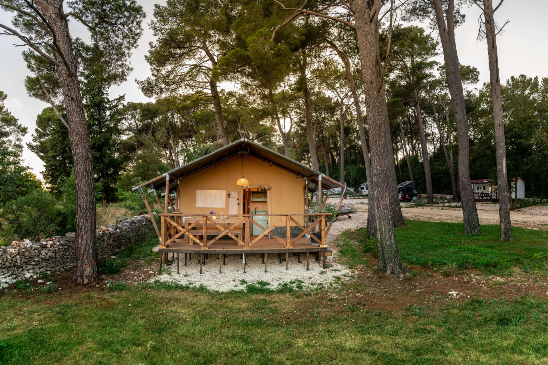 🏕️ Relax in Nature with Comfort!Located in the peaceful village of Manjadvorci, Barban municipality, Camp Dvor is the perfect getaway. Choose between air-conditioned mobile homes and fully equipped glamping tents – ideal for families, couples, and nature lovers.